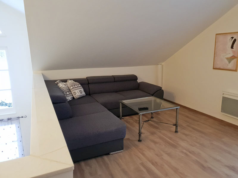 • Galerie mit Schlafsofa und Schrankwand mit großem TV