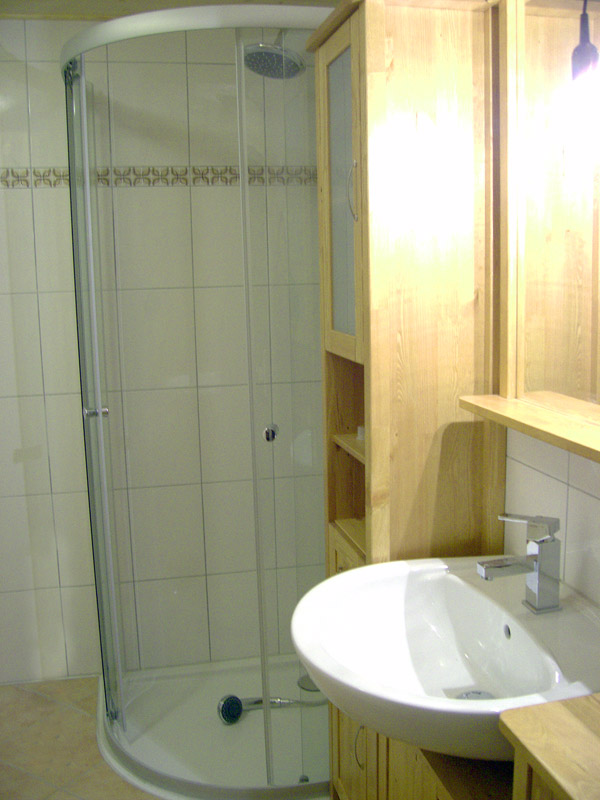 - 1 Badezimmer mit Dusche / WC im OG und ein weiteres mit Dusche / WC, Waschmaschine, Trockner und Sauna im UG.