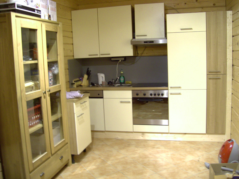 - Küche mit Kühlschrank und Gefrierfach, Backofen mit Ceranfeld, Dunstabzugshaube, Wasserkocher, Spülmaschine, Kaffeemaschine, Toaster komplett ausgestattet mit Geschirr und Besteck