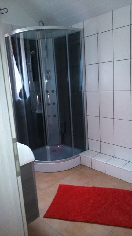 - 2 Badezimmer (eins mit Dusche / WC und Sauna im Erdgeschoss, das andere mit Dusche / WC im Erdgeschoss
