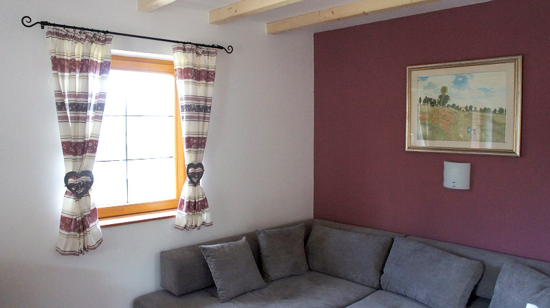 - gemütliches Wohn-Esszimmer mit großem Ecksofa, SAT-TV, Kamin und massiver Holz-Sitzgruppe